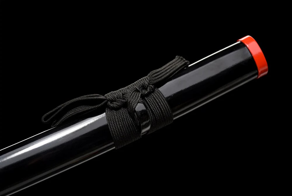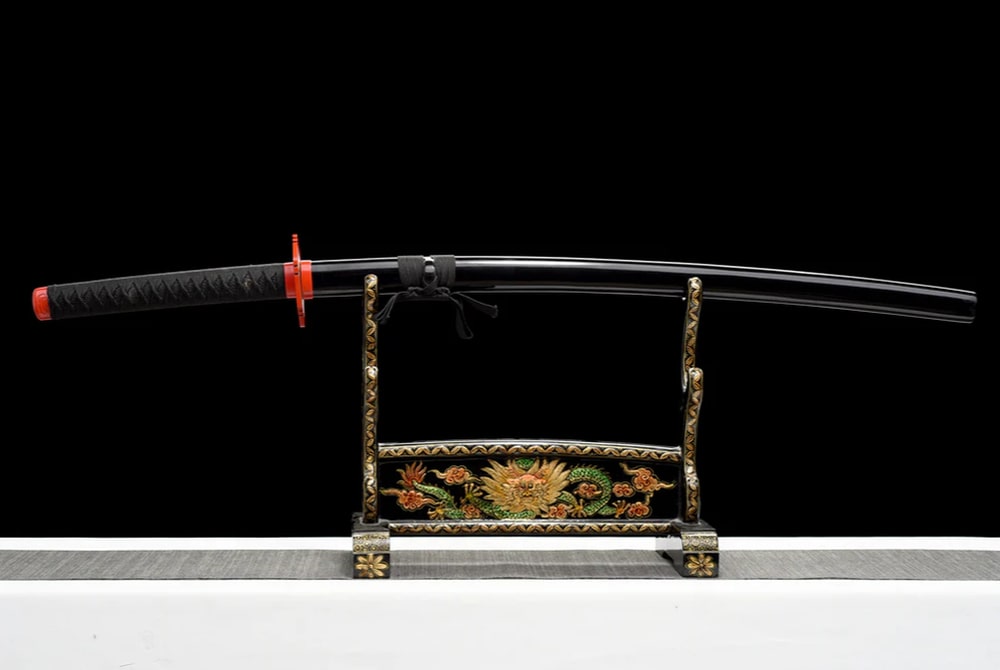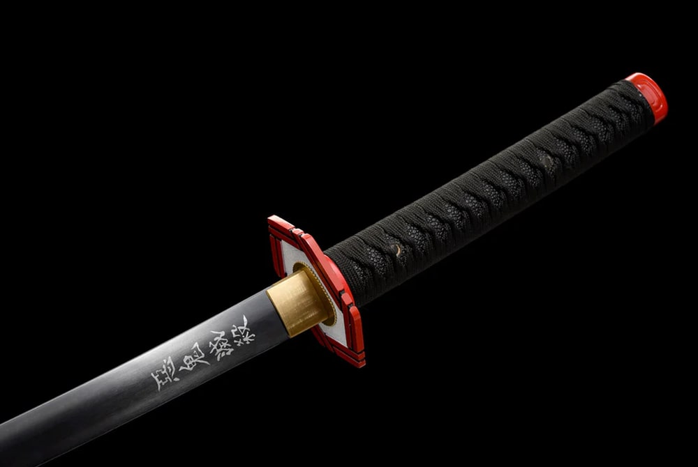 Ein japanisches Katana, inspiriert von der epischen Welt von Demon Slayer. Mit unvergleichlicher Präzision in Handarbeit geschmiedet, verkörpert dieses dunkle Katana die Kraft und Eleganz des Charakters Giyu Tomioka. Die Schönheit der schwarzen Klinge dieses Katanas bleibt dank des abriebfesten, kohlenstoffreichen Stahls lange erhalten. Dieser edel-düstere Farbton findet sich auch in der schwarz lackierten Massivholz-Scheide wieder. Eine Tsuba aus lackierter Zinklegierung in Rot, Schwarz und Weiß verleiht dem Schwert ein raffiniertes, klassisch harmonisches Erscheinungsbild.