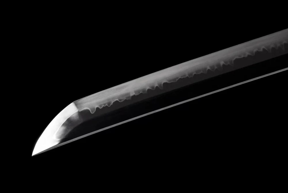 • Klingenmaterial: T10-Stahl, in Lehm gehärtet mit Hamon Mehr über diesen Stahl erfahren