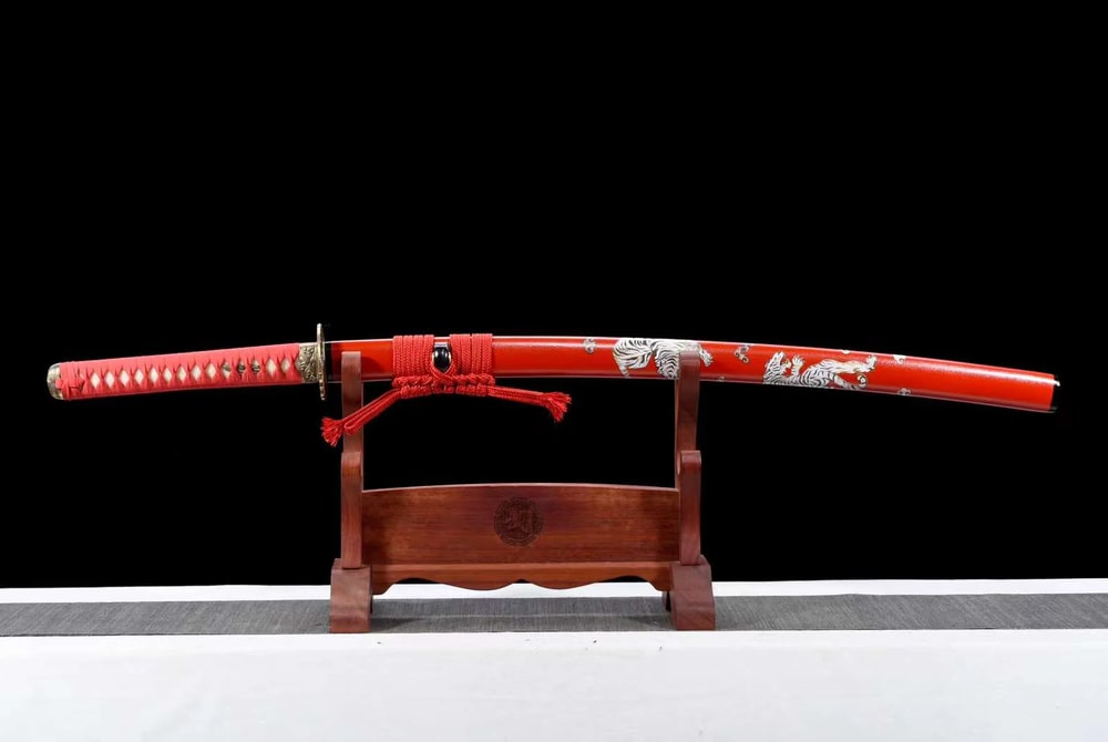 Sie möchten ein Katana besitzen, das wirklich Eindruck macht? Dann ist das Mezame-no-Tora („Das Erwachen des Tigers“) genau das Richtige für Sie! Aus hochwertigem T10-Stahl handgeschmiedet und in Lehm gehärtet für ein markantes Hamon, besticht dieses Katana durch seine leuchtend rote Saya, die mit Tigermotiven verziert ist – Symbol für Stärke und Mut. Eine mutige Wahl für alle, die Kraft und Leidenschaft ausdrücken möchten.