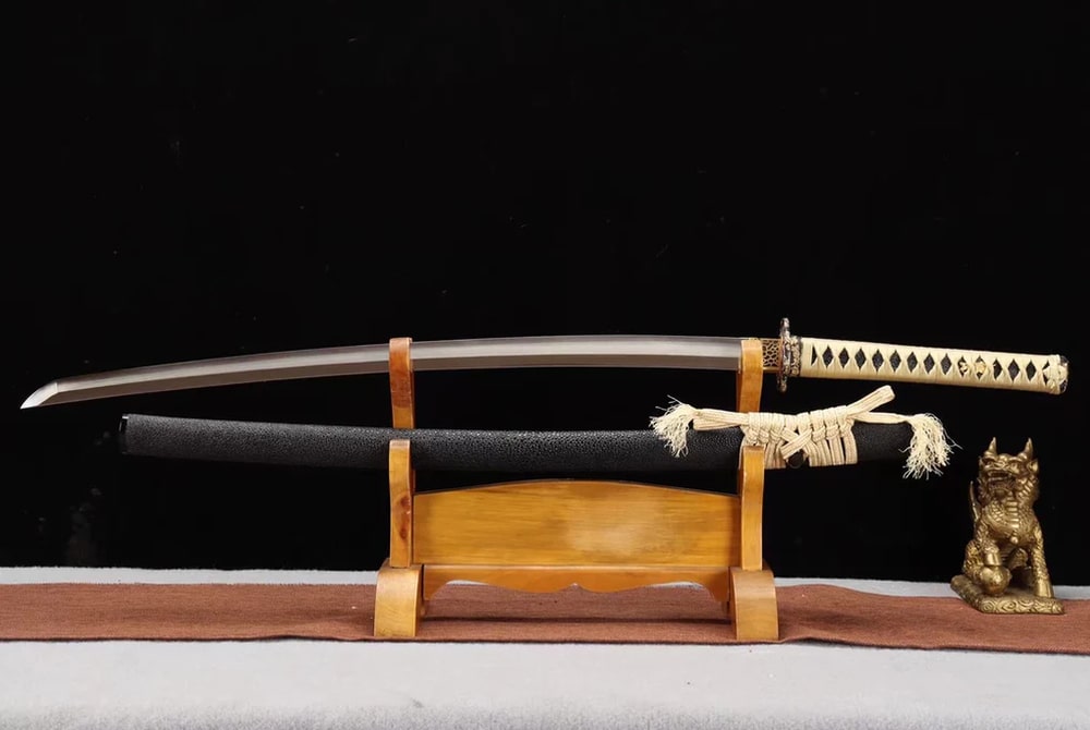 Das Hikari no Bushido Katana, ein wahres Meisterwerk der japanischen Schwertschmiedekunst, verkörpert das Wesen der Perfektion und das Erbe des Bushidō. Jeder Aspekt dieses Schwertes wurde sorgfältig gestaltet, um Eleganz und Kraft zu repräsentieren. Die Klinge des Hikari no Bushido Katana ist ein Schatz, geschmiedet aus einer geheimen Legierung, die seit Jahrhunderten von einer Linie legendärer Schmiede bewahrt wird. Sie trägt ein faszinierendes Hamon, das durch eine traditionelle Lehmbeschichtungstechnik beim Härten entsteht. Das damaszierte Maserungsmuster, das durch wiederholtes, meisterhaftes Falten erzielt wird, verleiht der rohen Kraft der Klinge eine künstlerische Note.