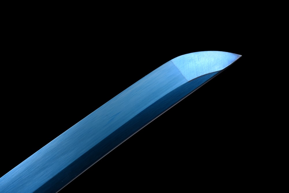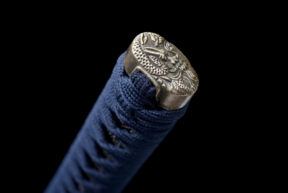 In einem tiefen, beinahe himmlischen Blau zieht dieses Katana mit seinem einzigartigen Glanz sofort alle Blicke auf sich. Geschmiedet aus Manganstahl bietet es ein perfektes Gleichgewicht zwischen Flexibilität und Widerstandsfähigkeit. Seine Klinge erinnert an legendäre Schwerter, Sinnbilder von Weisheit und Kontrolle. Der blaue Drache, der auf der schwarz lackierten Saya eingraviert ist, symbolisiert Schutz und ruhige Stärke, während die Full-Tang-Konstruktion eine makellose Stabilität gewährleistet. Ein Schwert, in dem sich japanische Kunst mit einer Harmonie aus Kraft und Eleganz vereint.